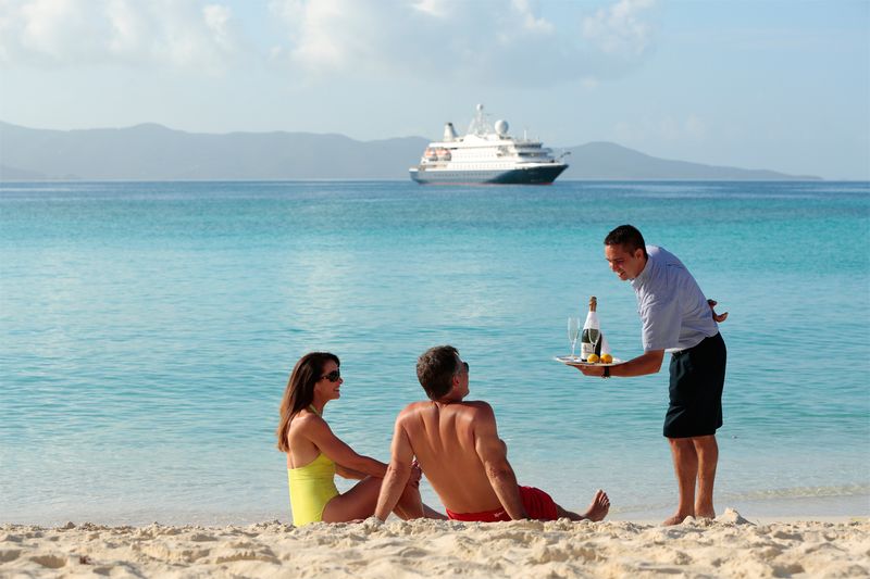 - Икра и шампанское в Вашем распоряжении на протяжении всего круиза (как, впрочем, и любое другое спиртное – за исключением, разве что, коллекционных марок), однако особенно запоминается ритуал сервировки икры с шампанским в бассейне – или прямо в море во время барбекю на пляже – неизвестно, что звучит громче: выскакивающие из бутылок пробки или затворы фотоаппаратов!