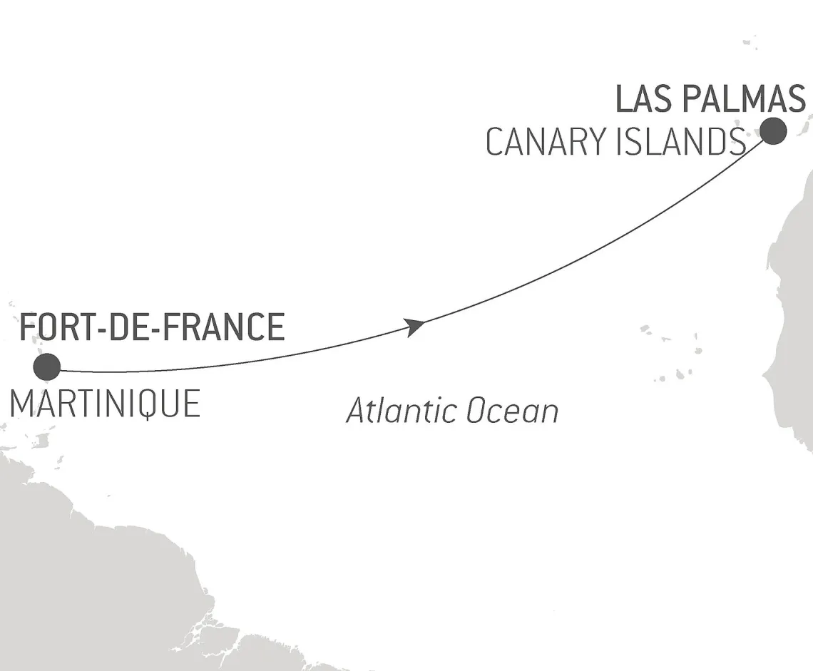 Маршрут круиза: Фор-де-Франс, о. Мартиника - море - море - море - море - море - море - море - море - море - Лас-Пальмас, о. Гран-Канария