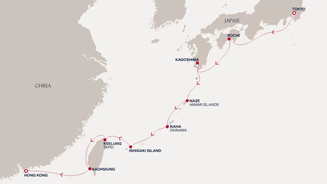 Маршрут круиза: Токио - море - Коти - Кагосима - Эр - Наха - Исигаки, о-ва Сакисима - Цзилун - Каошинь - море - Гонконг - Гонконг