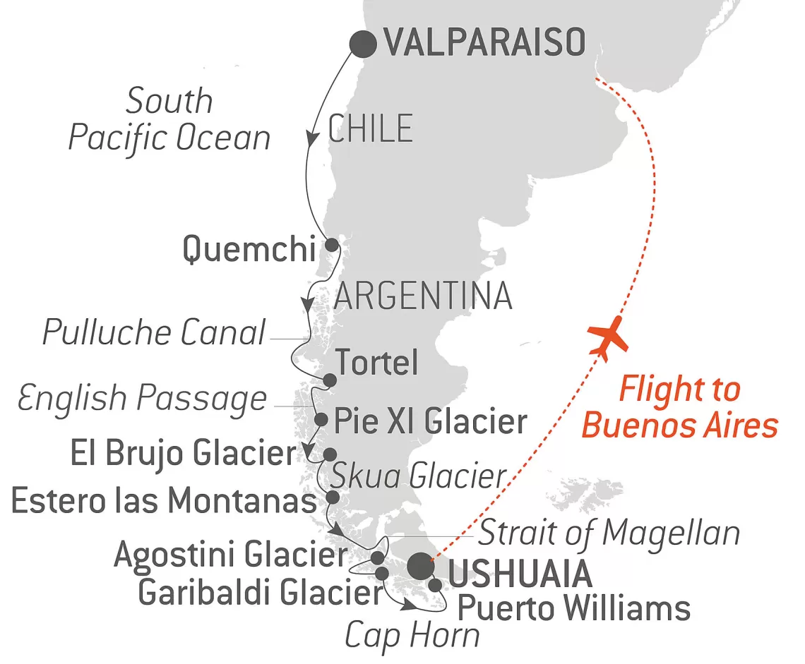 Маршрут круиза: Буэнос-Айрес - море - море - Пуэрто-Мадрин - море - Порт-Стэнли - море - море - Ушуайя - Ушуайя - море - море - Пуэрто-Монт - море - Вальпараисо / Сантьяго - Вальпараисо / Сантьяго - море - море - море - море - Ханга-Роа, о. Пасхи - море - море - Баунти-Бэй - море - море - Папеэте, о.Таити - Папеэте, о.Таити - о. Муреа - море - Атолл Аитутаки - о. Раротонга - море - море - море - море - море - Бэй-оф-Айлендс - Окленд - Тауранга - море - Литтелтон / Крайстчерч - Данидин - Милфорд-Саунд - море - Хобарт - Хобарт - море - Сидней - Сидней - море - море - Нумеа - море - Луганвилл - море - море - море - Апиа, о. Уполу - Паго-Паго, о. Тутуила - море - море - море - море - море - Гонолулу, о. Оаху - Хило, о. Биг-Айленд - море - море - море - море - море - Лос-Анджелес - море - море - Кабо-Сан-Лукас - море - море - море - Пунтаренас - Панамский канал - море - Панамский канал - море - Очо-Риос - море - море - Род-Таун, о. Тортола - Филипсбург, о. Синт-Мартен - море - море - море - море - море - море - Лас-Пальмас, о. Гран-Канария - море - море - о. Майорка - море - Неаполь / Помпеи - Чивитавеккья / Рим - Генуя / Милан