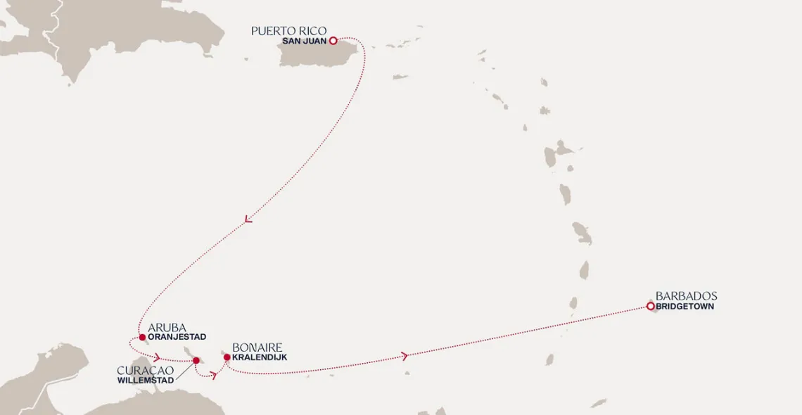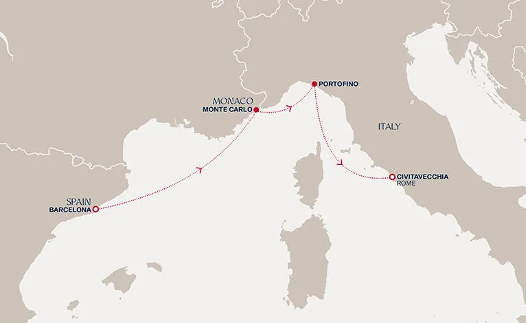 Маршрут круиза: Майами - море - море - Кингс Варф, о. Айрленд-Айленд - Кингс Варф, о. Айрленд-Айленд - море - море - море - море - Орта, о.Фаял - Понта-Делгада, о.Сан-Мигел - море - море - Кадиc / Севилья - Малага - море - Барселона - море - Монте-Карло - Портофино - Чивитавеккья / Рим - Сорренто - море - Монемвасия - о. Милос - Пирей / Афины