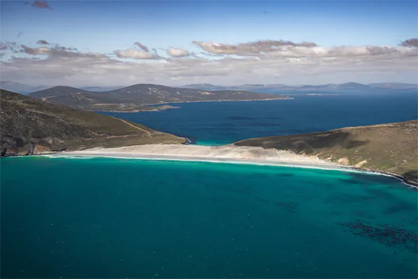 Сондерс отличается необычными очертаниями, фактически это три полуострова, на каждом из которых возвышаются холмы. Они соединяются между собой золотистыми песчаными отмелями. Необычный рельеф рождает удивительной красоты пейзажи.