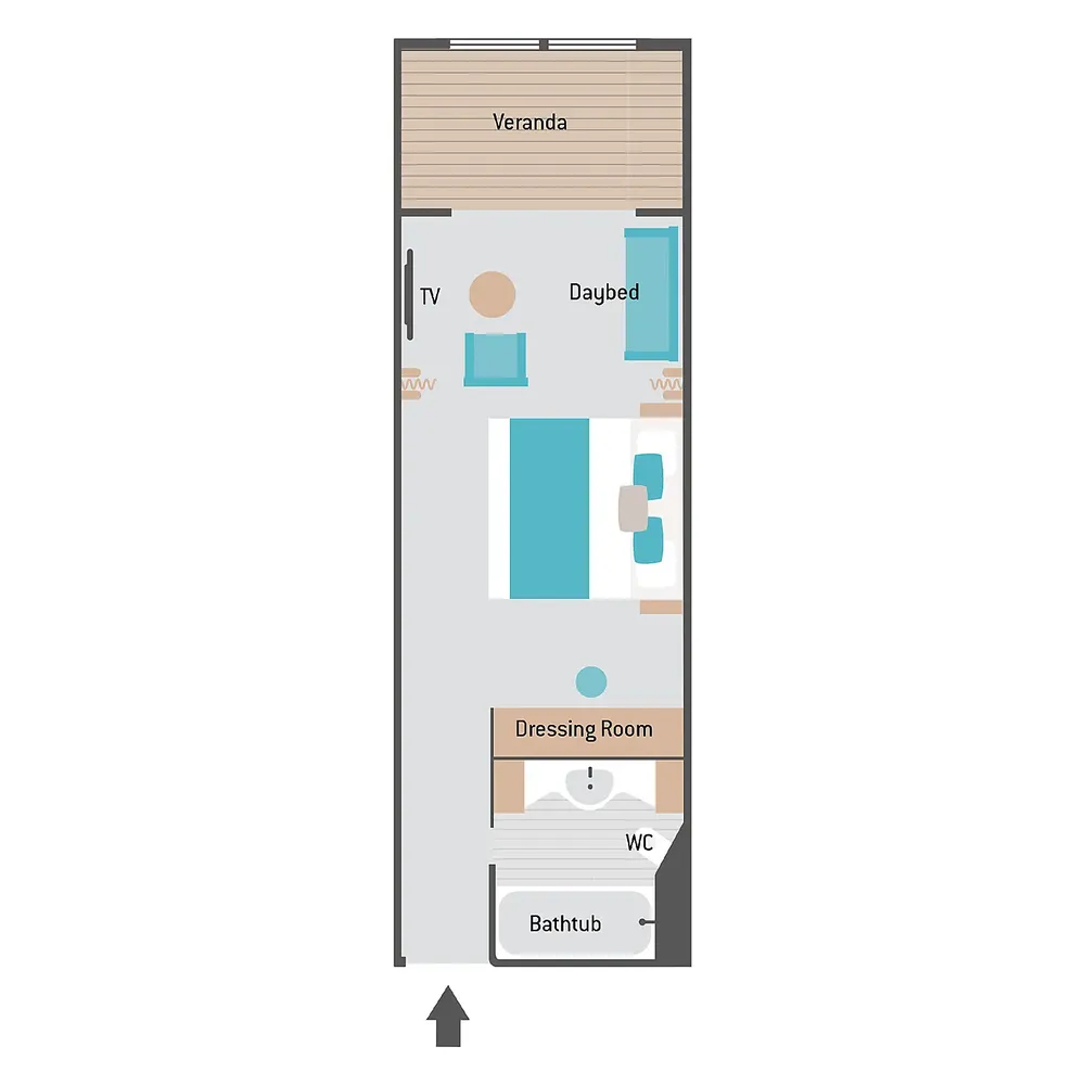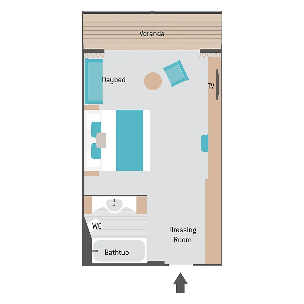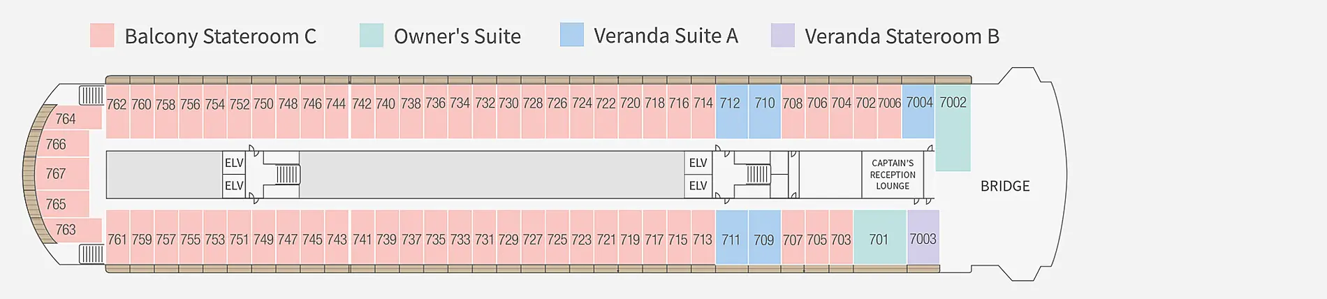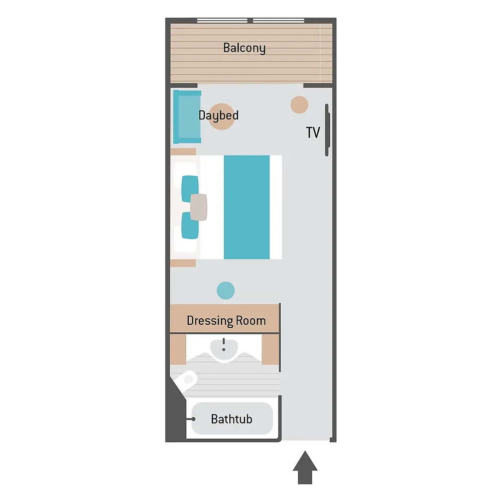 Площадь каюты: ~ 49 м2 (балкона ~ 7 м2)