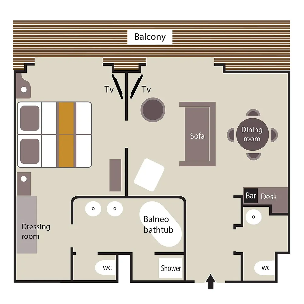 Площадь каюты: ~ 37 м2 (балкона ~ 8 м2)