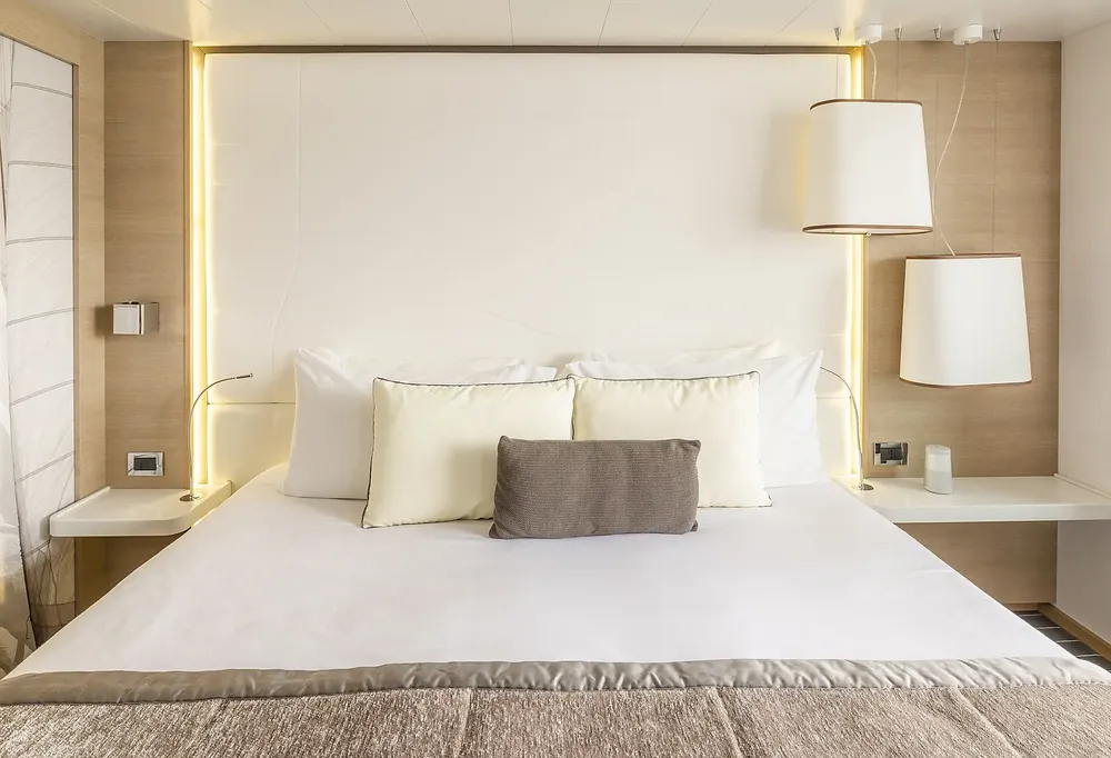 Дизайн интерьера 132 кают и люксов Le Soleal выполнен в очень мягких и нежных тонах, оттенками серого и белого в сочетании с натуральным деревом. Таким образом, Le Soleal напоминает внешний вид и стиль мира яхтинга, в то же время добавляя нотку изысканности.