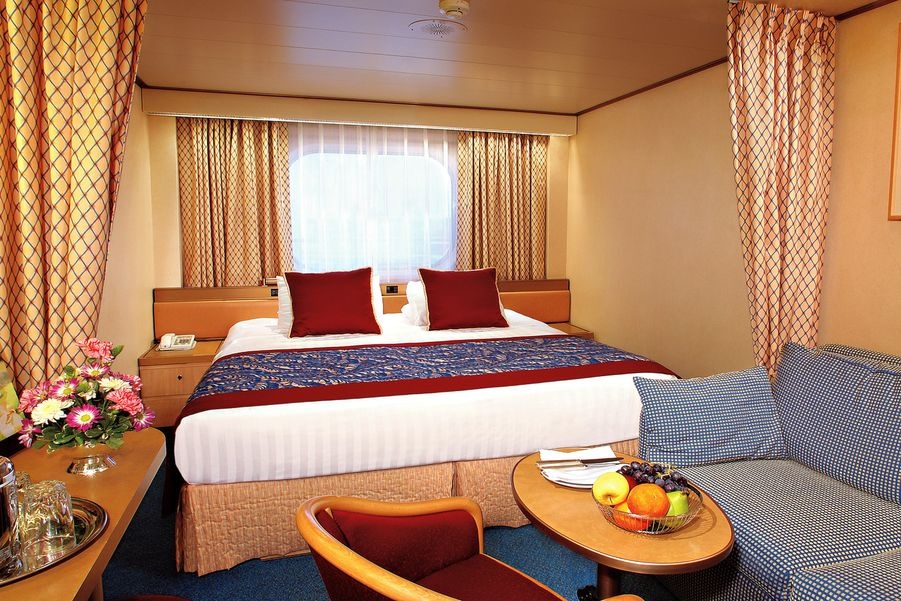 - 2 односпальные кровати, трансформируемые в кровать размера queen-size (Во всех каютах категории FF есть диван-кровать и пульман)