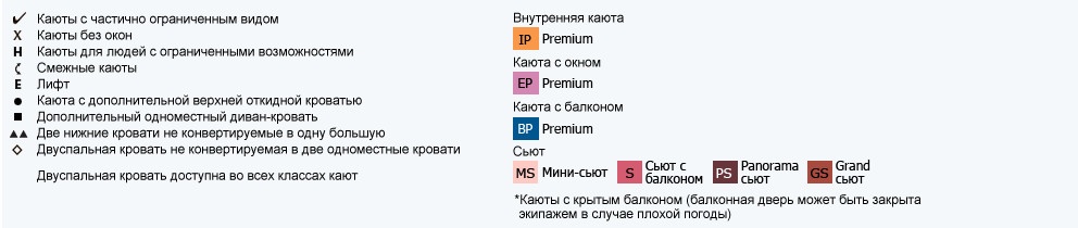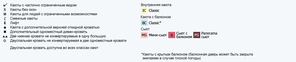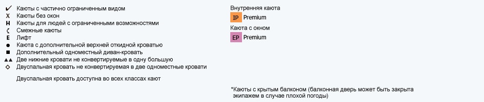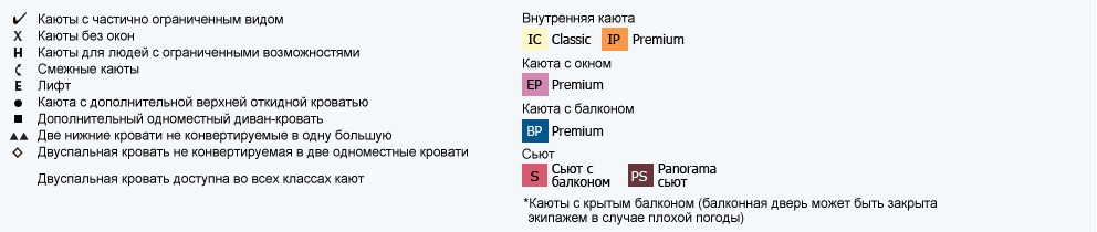Расположение каюты: 4, 5, 6, 7, 8 палуба