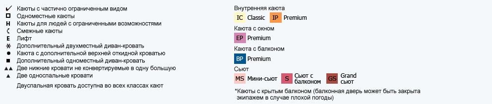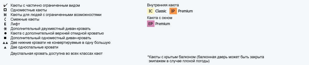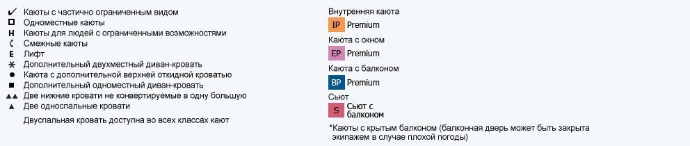 Расположение каюты: 1, 2, 6, 7, 9 палуба